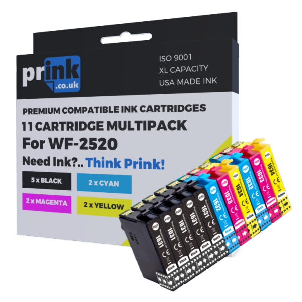 5 x Black Plus 2 Each Cyan-Magenta-Yellow Replaces Epson 16XL (Pen) for Epson WorkForce WF-2520